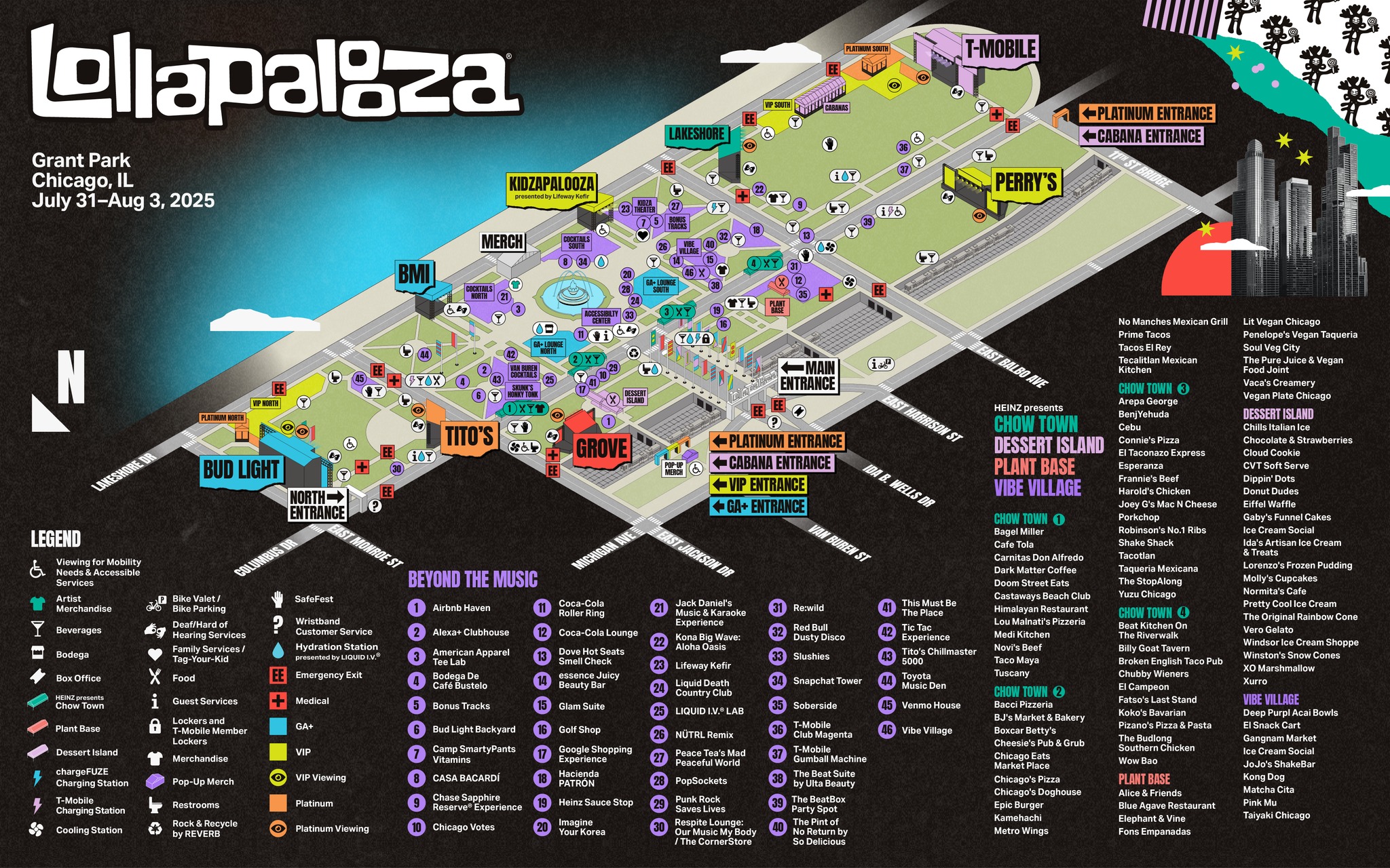 Lollapalooza 2025(Lollapalooza Chicago), Below is the entire live stream, location, map, full set times, timetable, lineup and schedule.