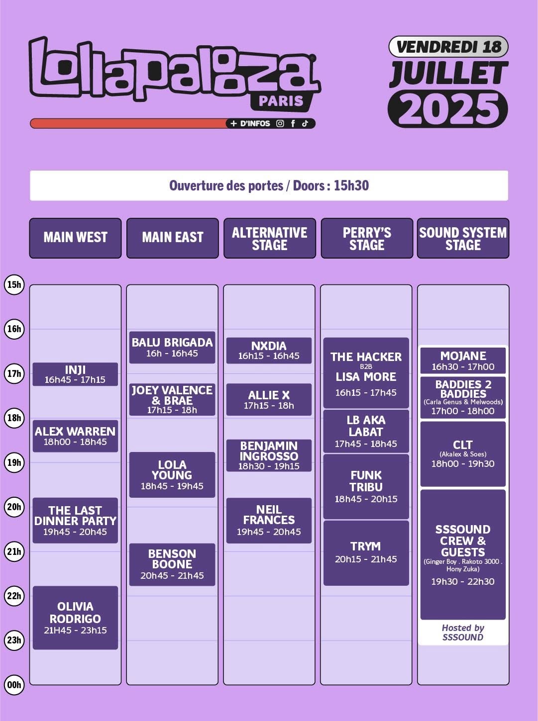 Lollapalooza Paris 2025 will take place in France, its a 3 days event, over 5 stages, more than 67 artists.