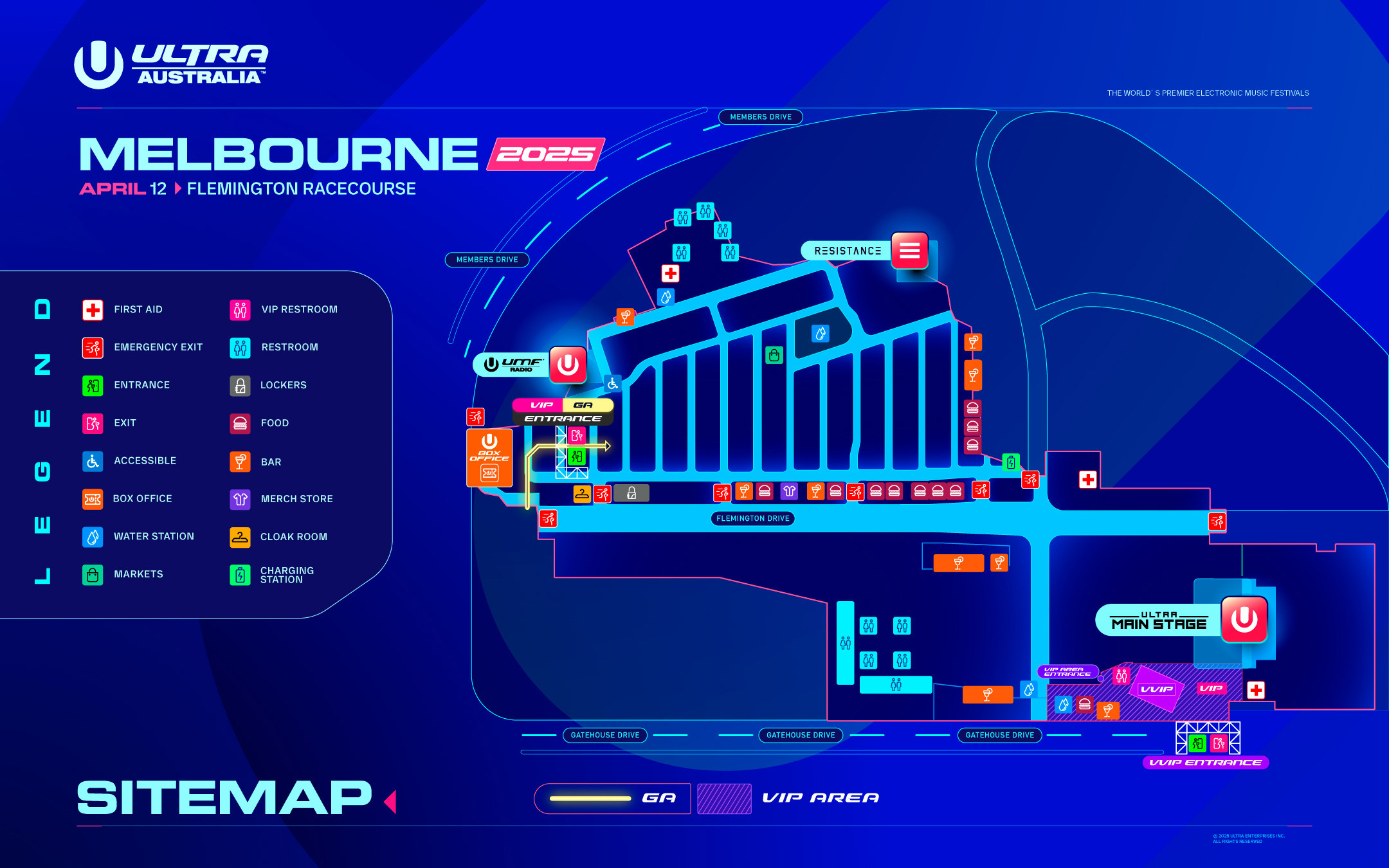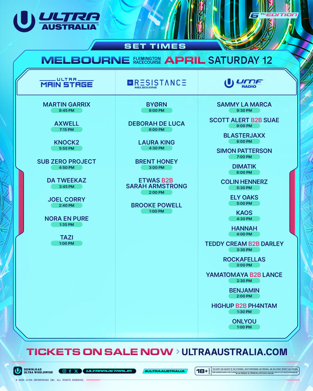 Ultra Australia 2025, Below is the entire live stream, location, map, full set times, timetable, lineup and schedule.