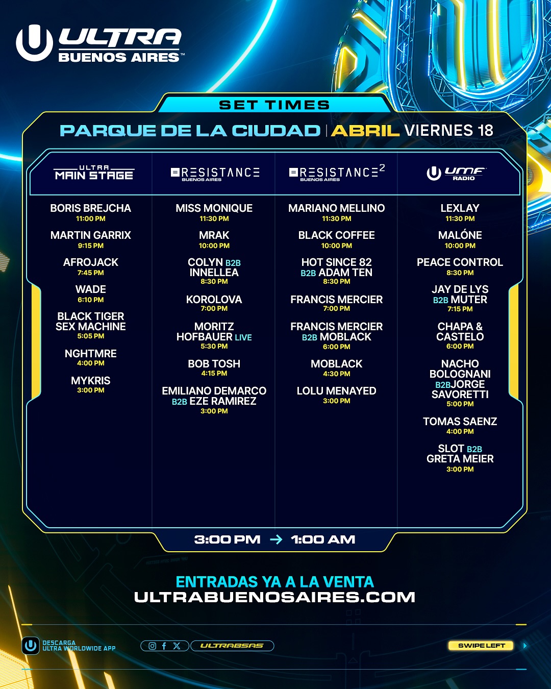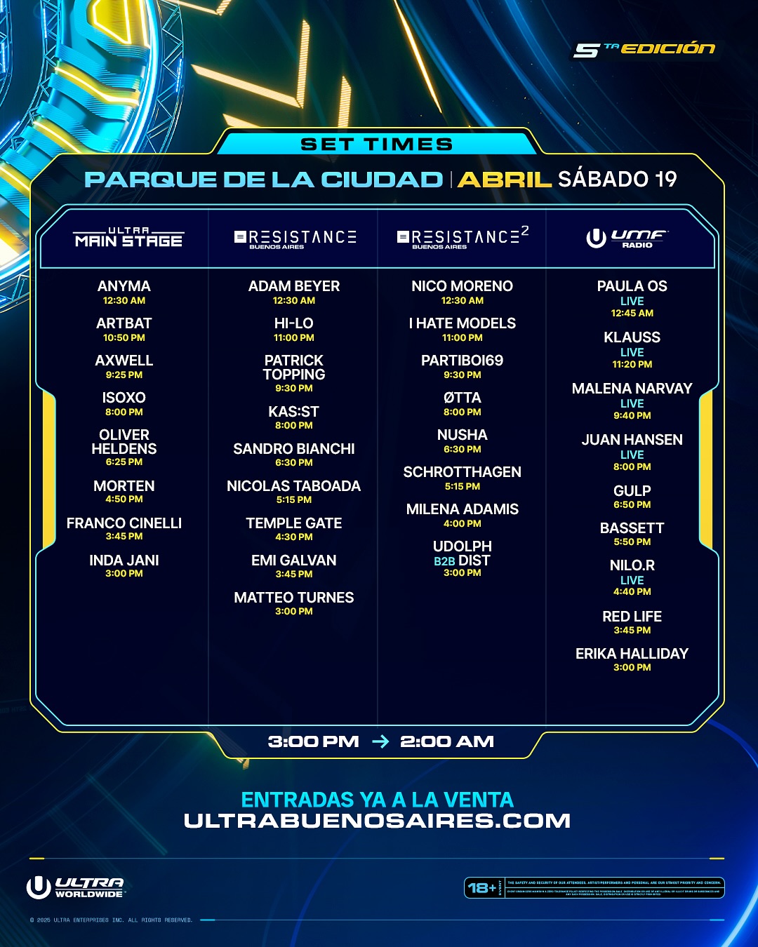 Ultra Buenos Aires 2025 will take place in Argentina, its a 2 days event, over 4 stages, more than 63 artists.