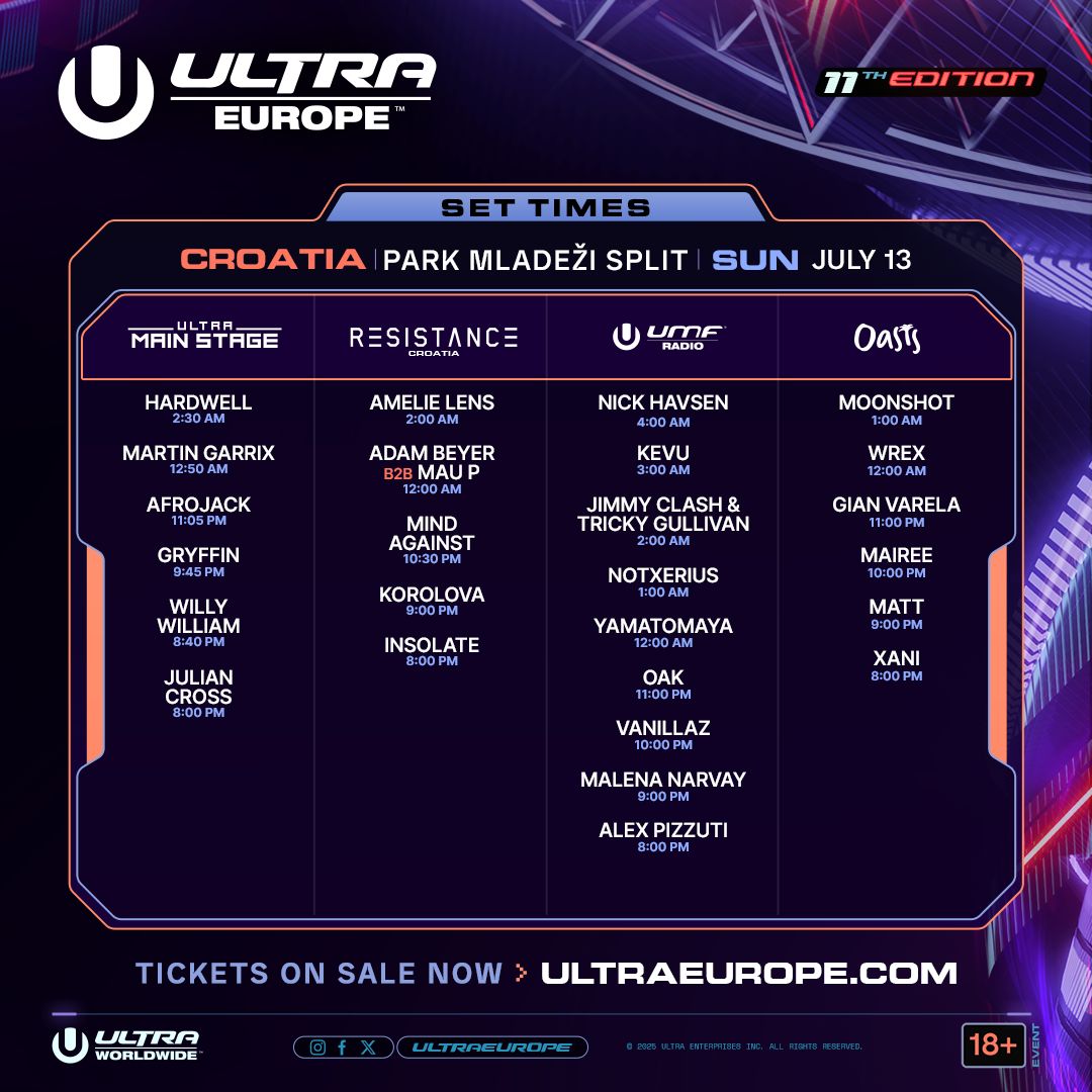 Ultra Europe 2025 will take place in Croatia, its a 3 days event, over 4 stages, more than 81 artists.