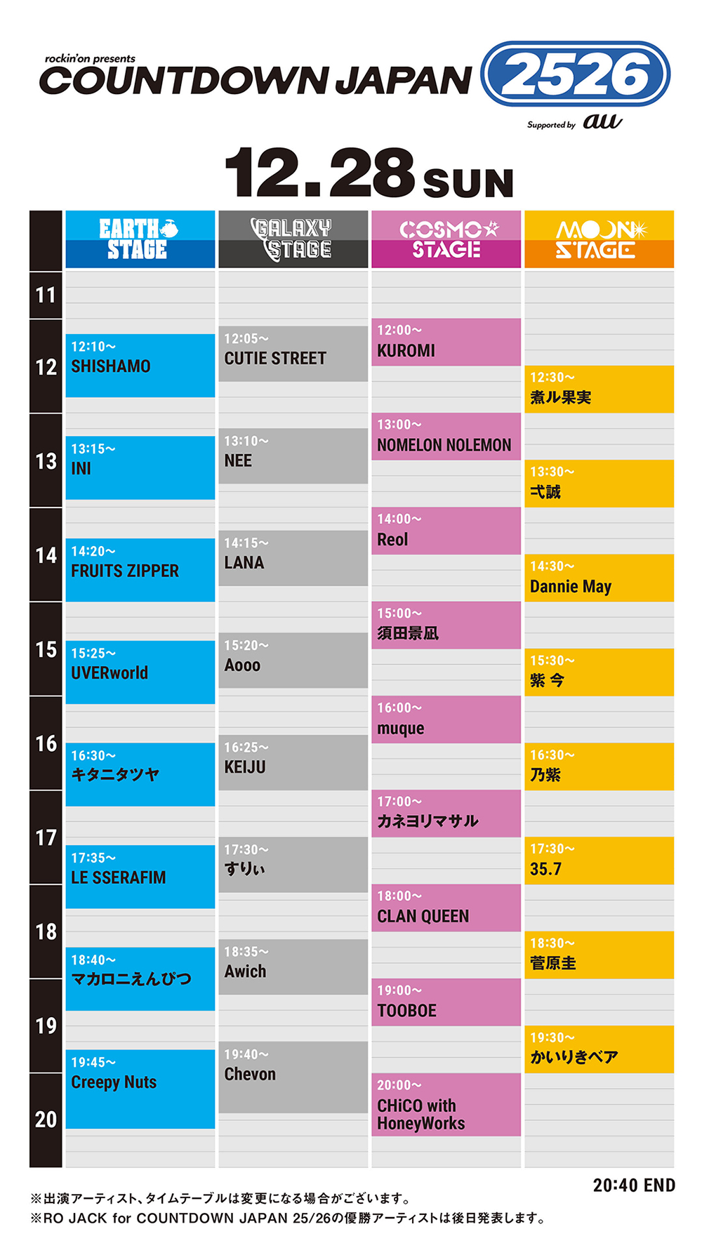 - COUNTDOWN JAPAN 25/26 - 5日目タイムテーブル