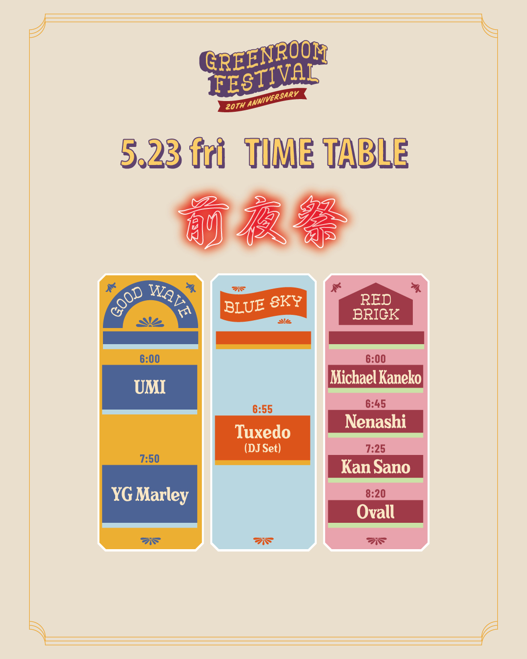 - GREENROOM FESTIVAL 2025 - プレパーティータイムテーブル