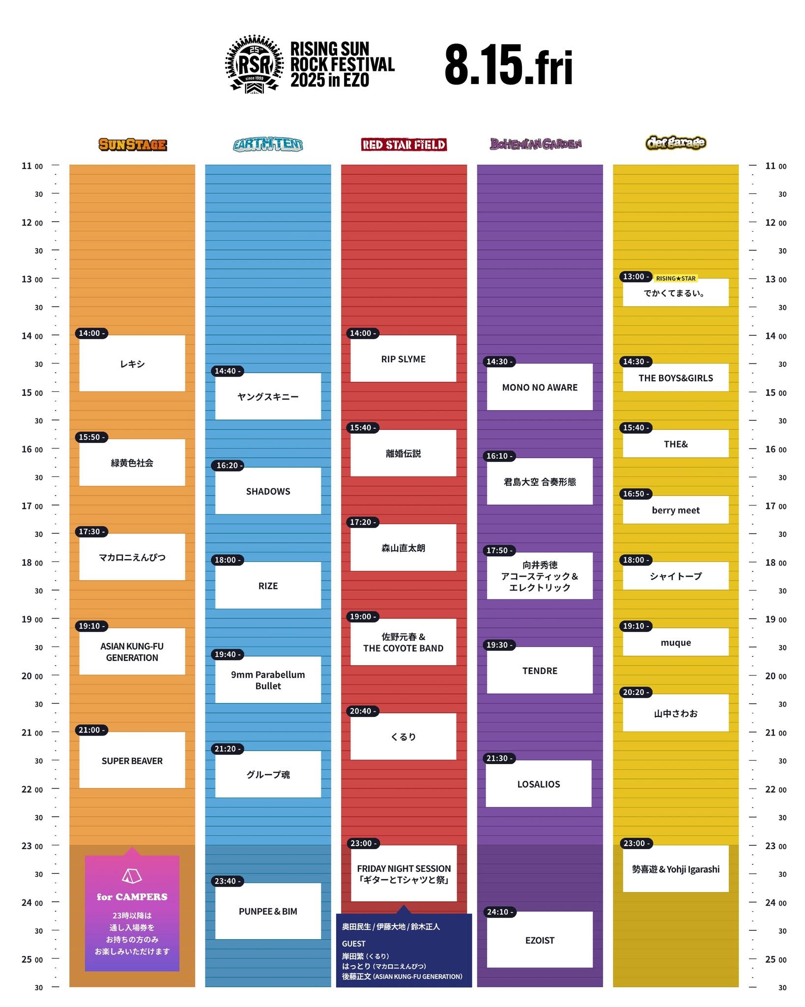- Rising Sun Rock Festival 2025 - 1日目タイムテーブル