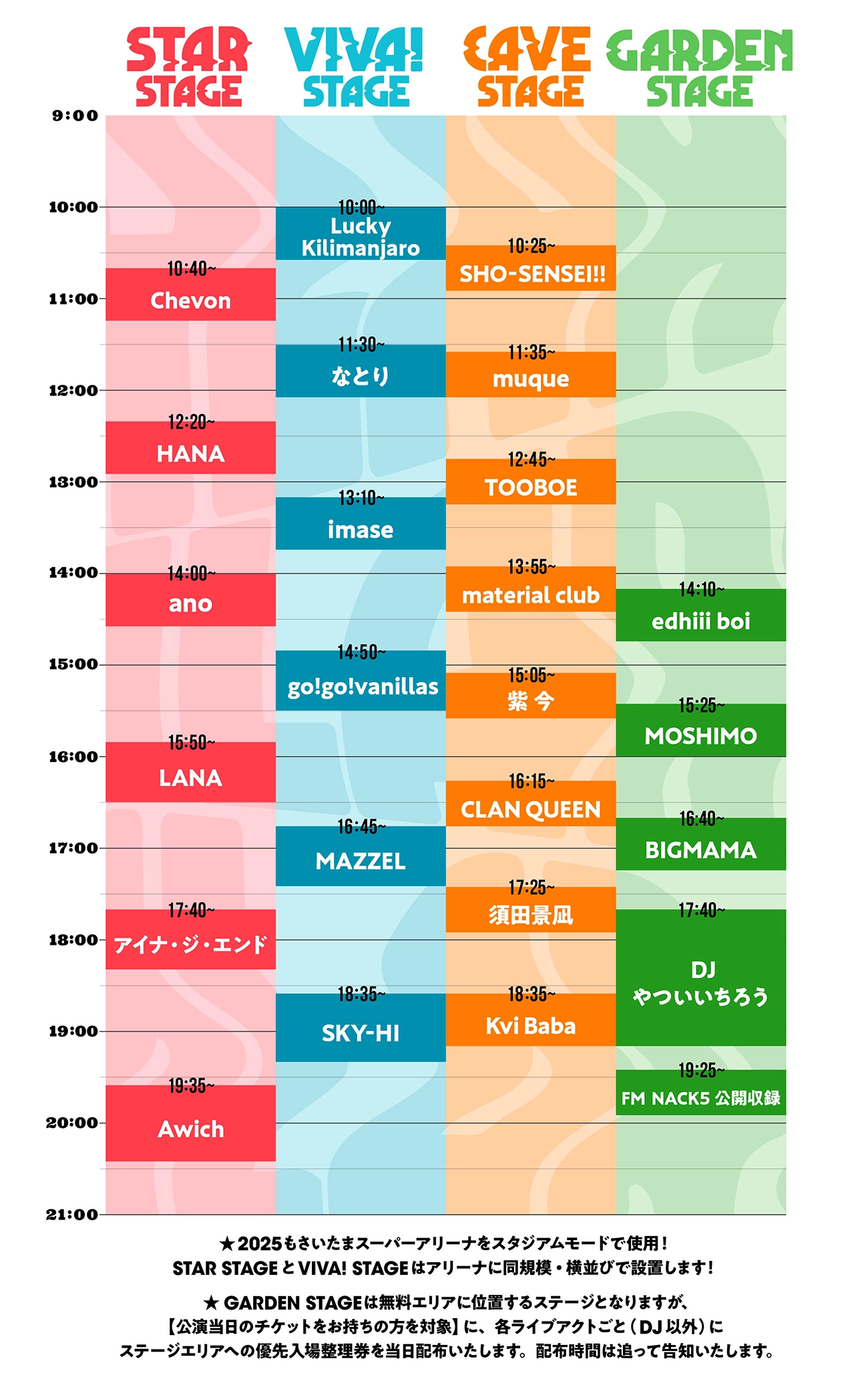 - VIVA LA ROCK 2025 - 1日目タイムテーブル