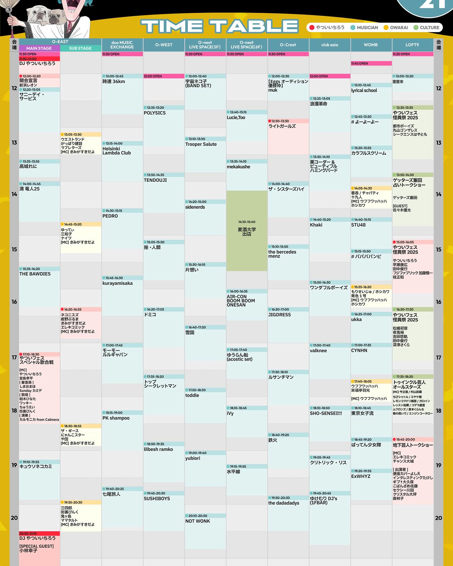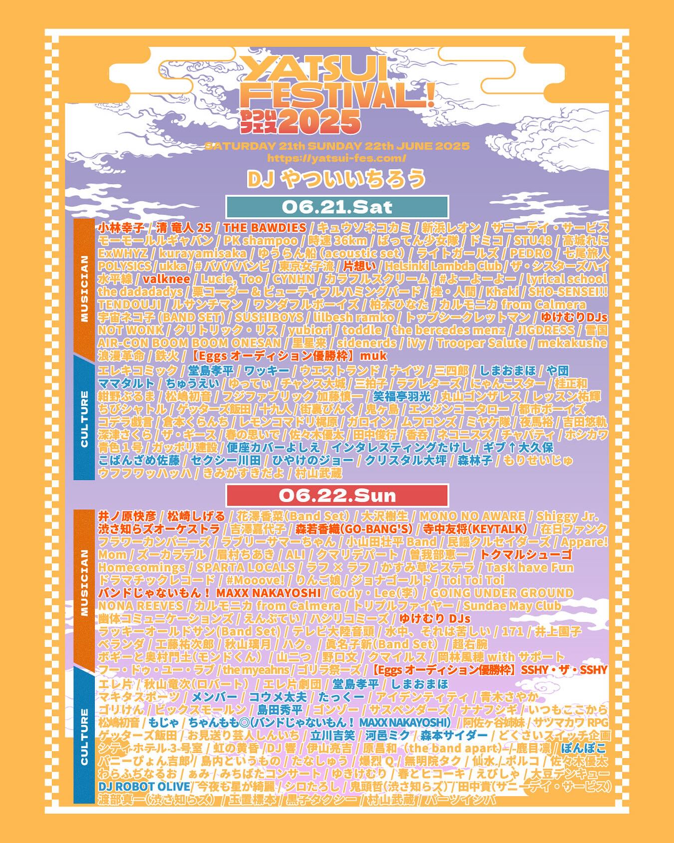 YATSUI FESTIVAL! 2025が6月21日から日本で始まり、2日間楽しめます、ライブストリーム、セットタイム、スケジュール、会場情報、ラインアップ、出演者一覧、タイムテーブル - 必要な情報はすべてこの記事に。アクセス情報もあります。