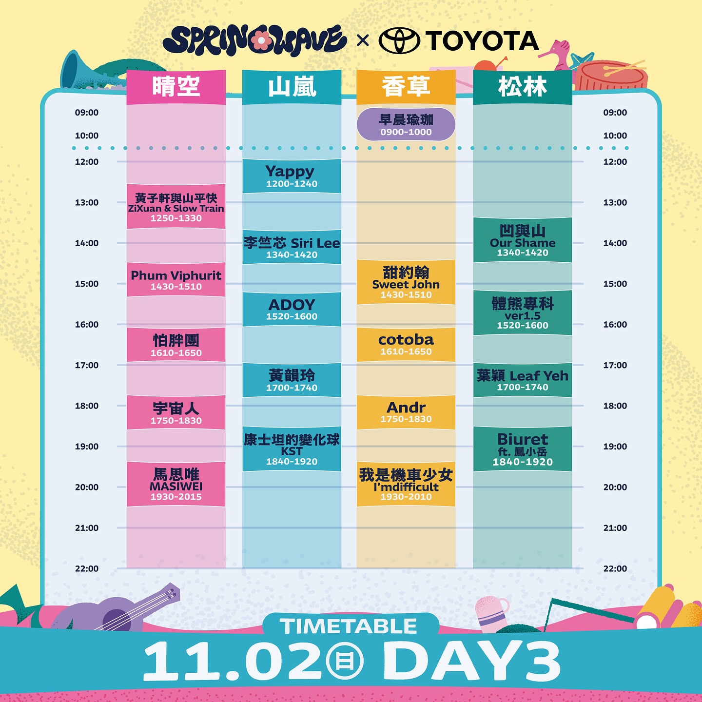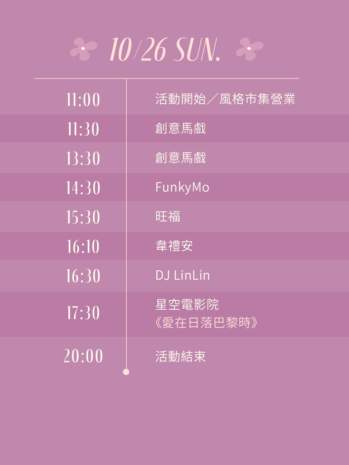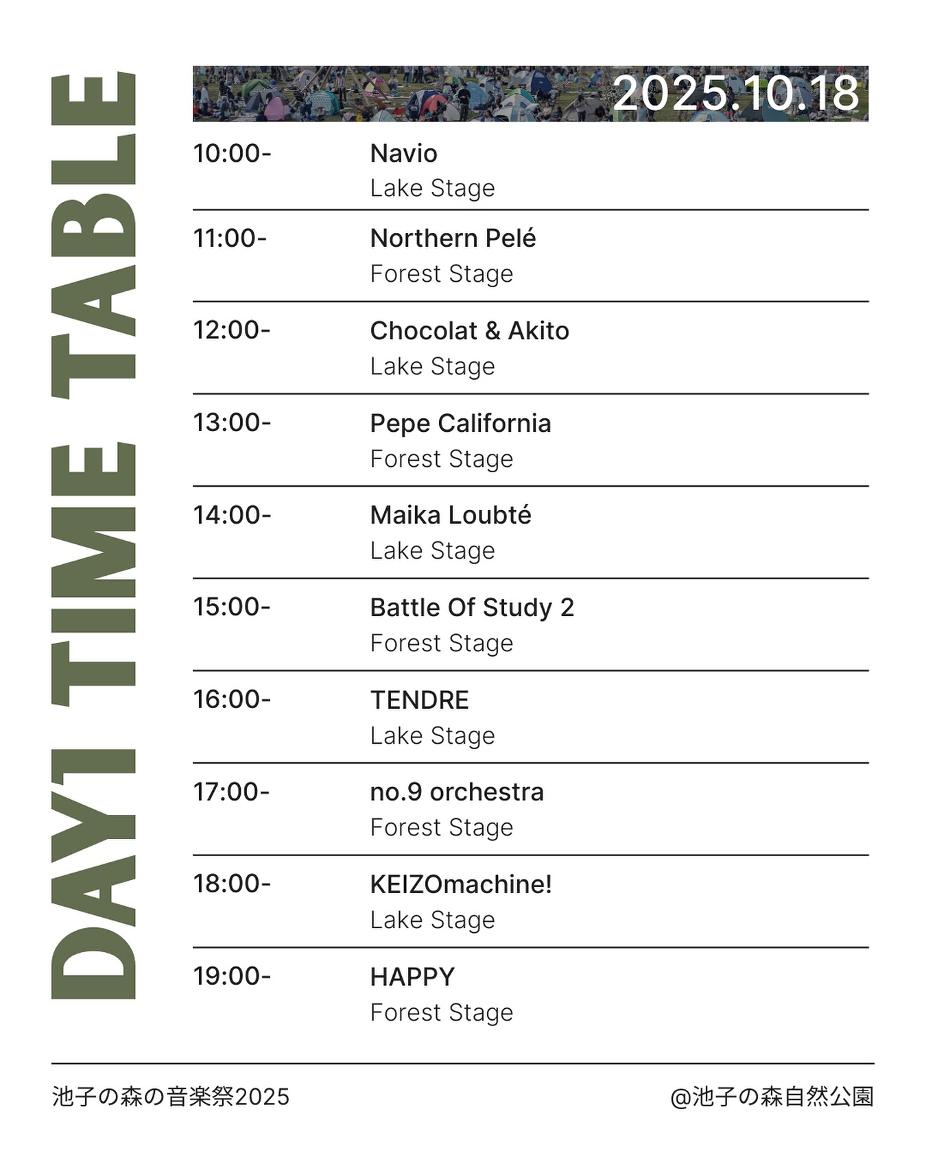 カレンダーFestTimetableが、世界の無料音楽フェス&イベント情報を厳選!インディー、ポップ、エレクトロ、K-POP好きにおすすめの最新ガイドです。音楽とカルチャーを満喫したいなら、今すぐチェックして友達と楽しもう!アメリカ イギリス スペイン 台湾 中国 日本 韓国 10月金曜日03ACL Music Festival 202510月3日(金)-10月12日(日)オースティンイベント情報公式ウェブサイトTwitterInstagramFacebookYouTube金曜日032025年永和星光派對10月3日(金)新北市イベント情報Facebook土曜日04MASHUP FESTIVAL kobe10月4日(土)-10月5日(日)兵庫県イベント情報公式ウェブサイトTwitterInstagram土曜日04風とロック芋煮会 202510月4日(土)-10月5日(日)福島イベント情報公式ウェブサイトTwitter土曜日04WaterBomb HongKong 202510月4日(土)-10月5日(日)香港イベント情報公式ウェブサイトTwitterInstagramFacebook土曜日04Taoyuan Iron Rose Music Festival 202510月4日(土)-10月5日(日)桃園イベント情報公式ウェブサイトInstagramFacebook土曜日042025年八德3C哈樂Day10月4日(土)-10月5日(日)台北イベント情報Facebook土曜日042025年南吼音樂季‧南吼交陪境10月4日(土)台南イベント情報Facebook土曜日04Chill在湖口歡喜過中秋10月4日(土)新竹イベント情報Facebook土曜日04一心二夜・經典之夜演唱會10月4日(土)-10月5日(日)南投イベント情報Facebook土曜日04Chiayi Youth Festival 5th10月4日(土)-10月5日(日)嘉義イベント情報公式ウェブサイトInstagram土曜日04Dancing of Light and Shadows-Light Festival 202510月4日(土)-10月19日(日)嘉義イベント情報公式ウェブサイト土曜日04Dongshi Summer Festival 202510月4日(土)-10月6日(月)嘉義イベント情報Facebook日曜日05Kinmen Island Life Festival 202510月5日(日)金門イベント情報Facebook月曜日062025年西螺星光之夜10月6日(月)雲林イベント情報Facebook木曜日09中華民國114年雙十國慶晚會10月9日(木)台中イベント情報公式ウェブサイト金曜日10Tomorrowland Brasil 202510月10日(金)-10月12日(日)サンパウロイベント情報公式ウェブサイトTwitterInstagramFacebook金曜日10Chill Out Festival 202510月10日(金)-10月12日(日)台北イベント情報InstagramFacebook金曜日10World in Pingtung 202510月10日(金)-10月12日(日)屏東イベント情報公式ウェブサイト金曜日102025年衛武營大型戶外狂歡派對:眾人的搖擺10月10日(金)高雄イベント情報公式ウェブサイトFacebook金曜日10Yunlin International Puppet Theater Festival 2025 Opening Concert10月10日(金)雲林イベント情報公式ウェブサイトFacebook土曜日11TOKYO ISLAND 202510月11日(土)-10月13日(月)東京都イベント情報公式ウェブサイトTwitterInstagramFacebook土曜日11京都音楽博覧会202510月11日(土)-10月12日(日)京都府イベント情報公式ウェブサイトTwitter土曜日11YOKOSUKA REGGAE BASH 202510月11日(土)-10月12日(日)神奈川県イベント情報公式ウェブサイトTwitterInstagram土曜日11Lukang Music Festival 2025 @ Lukang Stadium10月11日(土)-10月12日(日)彰化イベント情報Facebook土曜日11SUPER ROCK CITY HIROSHIMA DX 202510月11日(土)-10月12日(日)広島県イベント情報公式ウェブサイトTwitterInstagram土曜日11JHULUO ROCK FEST 202510月11日(土)-10月12日(日)嘉義イベント情報InstagramFacebook土曜日11ROCK IN TAICHUNG 202510月11日(土)-10月12日(日)台中イベント情報InstagramFacebook土曜日11FM802 MINAMI WHEEL 202510月11日(土)-10月13日(月)大阪イベント情報公式ウェブサイトTwitterInstagramFacebook土曜日11Creamfields Chile 202510月11日(土)-10月12日(日)サンティアゴイベント情報公式ウェブサイトInstagramFacebook土曜日11Creamfields Argentina 202510月11日(土)-10月12日(日)ブエノスアイレスイベント情報公式ウェブサイトTwitterInstagramFacebook水曜日15國立臺灣海洋大學72週年校慶演唱會10月15日(水)基隆イベント情報公式ウェブサイト金曜日17Vagabond Festival 202510月17日(金)-10月19日(日)台南イベント情報InstagramFacebook土曜日18池子の森の音楽祭202510月18日(土)-10月19日(日)神奈川県イベント情報公式ウェブサイトTwitterInstagramFacebook土曜日18LIVE AZUMA 202510月18日(土)-10月19日(日)福島イベント情報公式ウェブサイトTwitterInstagramFacebookYouTube土曜日18MIYAKO ISLAND ROCK FESTIVAL 202510月18日(土)沖縄県イベント情報公式ウェブサイトTwitterInstagramFacebookYouTube土曜日18ASAGIRI JAM 202510月18日(土)-10月19日(日)静岡県イベント情報公式ウェブサイトTwitterInstagramFacebook土曜日18Chillin' Vibes 202510月18日(土)大阪イベント情報公式ウェブサイトTwitterInstagram土曜日18ONE PARK RIVERFES 2025 in MINOKAMO10月18日(土)-10月19日(日)岐阜県イベント情報公式ウェブサイトTwitterInstagram土曜日18鯖江JAZZフェスティバル202510月18日(土)-10月19日(日)福井県イベント情報公式ウェブサイトTwitterInstagram土曜日18ええじゃないか!とよフェス202510月18日(土)愛知県イベント情報公式ウェブサイトTwitter土曜日18Lukang Music Festival 2025 @ Baguashan Great Buddha10月18日(土)-10月19日(日)彰化イベント情報Facebook土曜日18MIND TRAVEL 202510月18日(土)東京都イベント情報公式ウェブサイトTwitterInstagram土曜日18いい湯だな!202510月18日(土)大分県イベント情報公式ウェブサイトTwitterInstagram土曜日18POP YOURS OSAKA 202510月18日(土)大阪イベント情報公式ウェブサイトTwitterInstagram土曜日18ドデ祭202510月18日(土)-10月19日(日)愛知県イベント情報公式ウェブサイトTwitterInstagram土曜