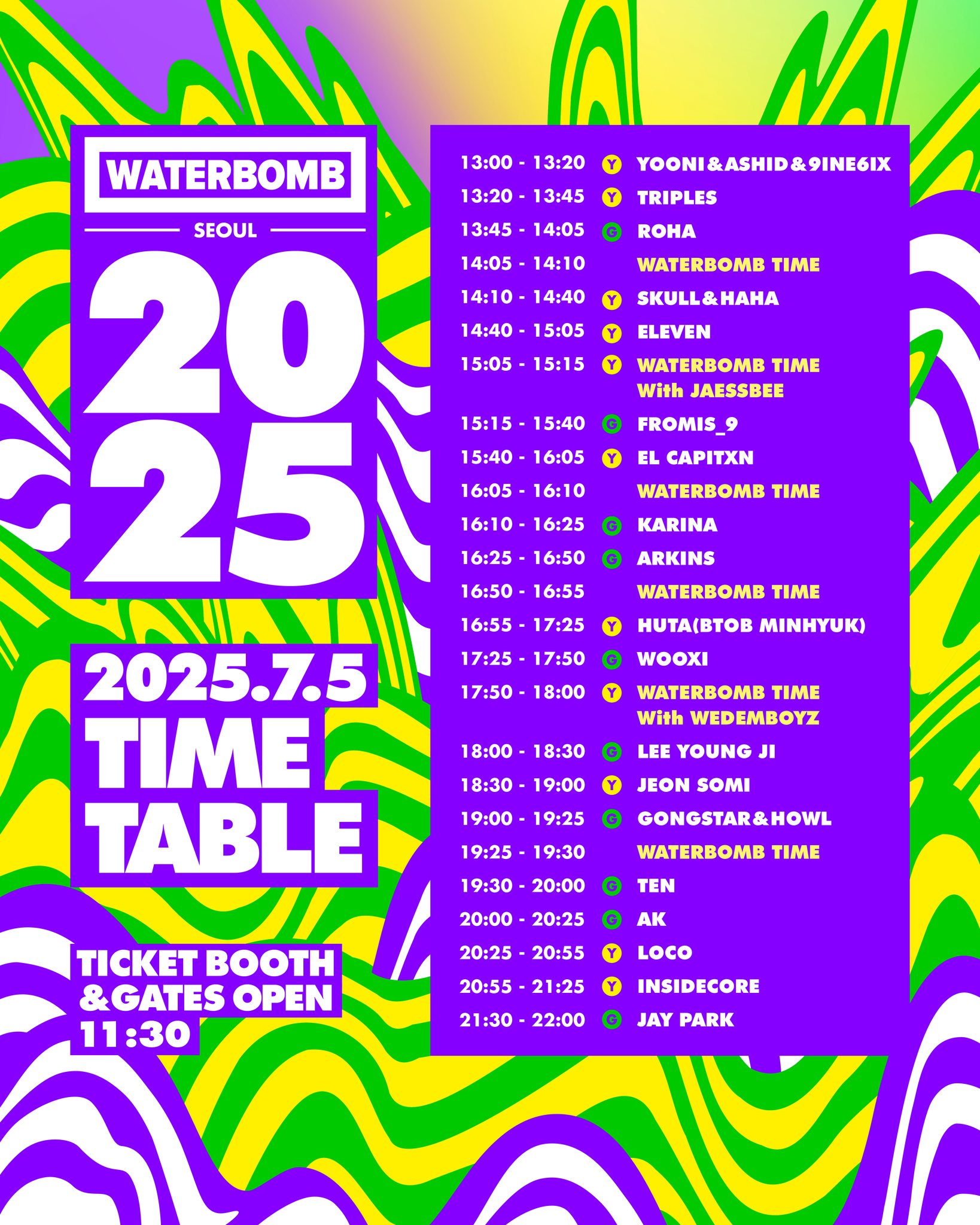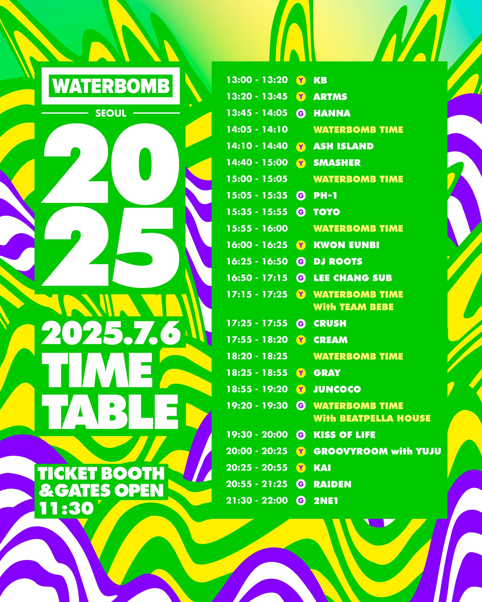 WaterBomb Seoul 2025(ウォーターボム・ソウル)、出演日程、出演者一覧、出演日発表、イベント情報、フルラインナップ発表、タイムテーブル、ライブ配信、会場、アクセス、ライブストリーム、ラインアップ、セットタイム、タイムテーブル、スケジュール.