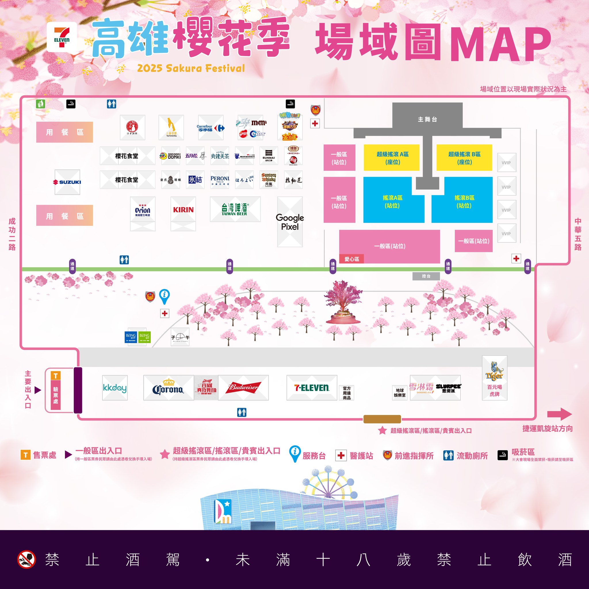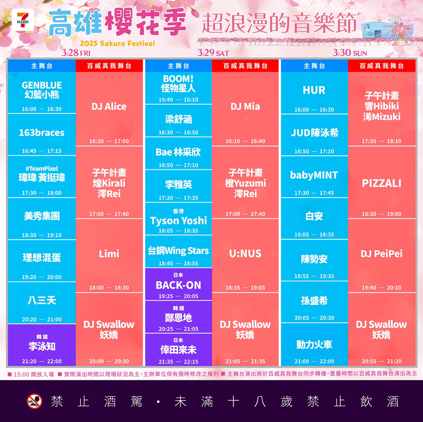 無論你身在何處,本篇文章都將持續更新,讓你全面掌握2025年7-ELEVEN高雄櫻花季(7-ELEVEN SAKURA FESTIVAL 2025)的最新動態。除了詳細的演出時間表與線上直播安排,我們還會提供會場地點、交通指引以及現場設施與亮點介紹。請隨時關注FestTimetable,我們將第一時間帶來最完整的官方資訊,幫助你規劃完美行程,盡享活動的每個精彩瞬間。