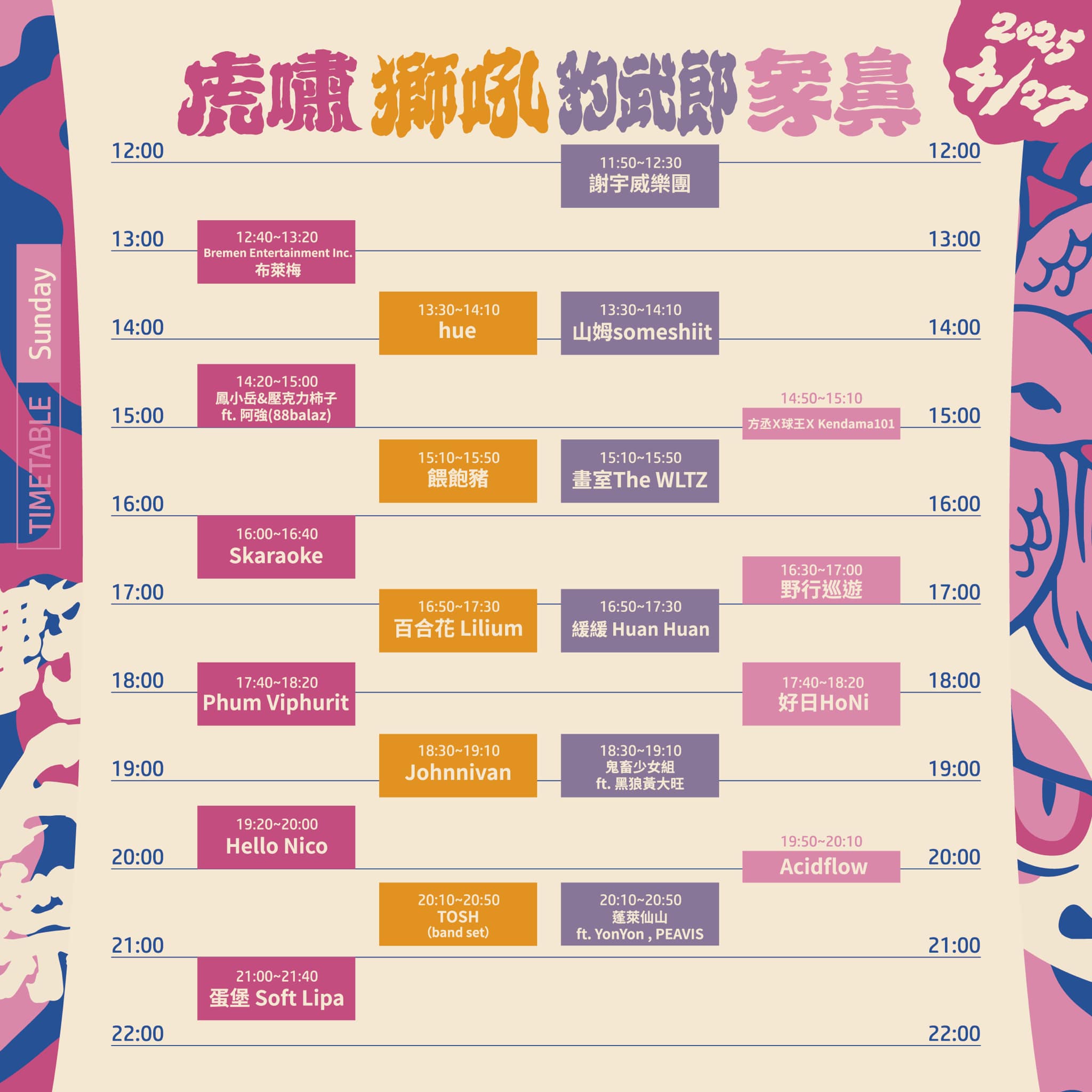 第2天將有hue、餵飽豬、百合花、山姆等知名表演者