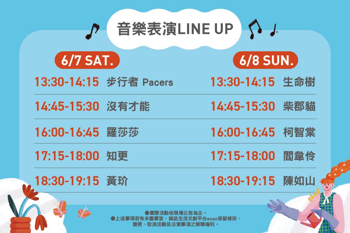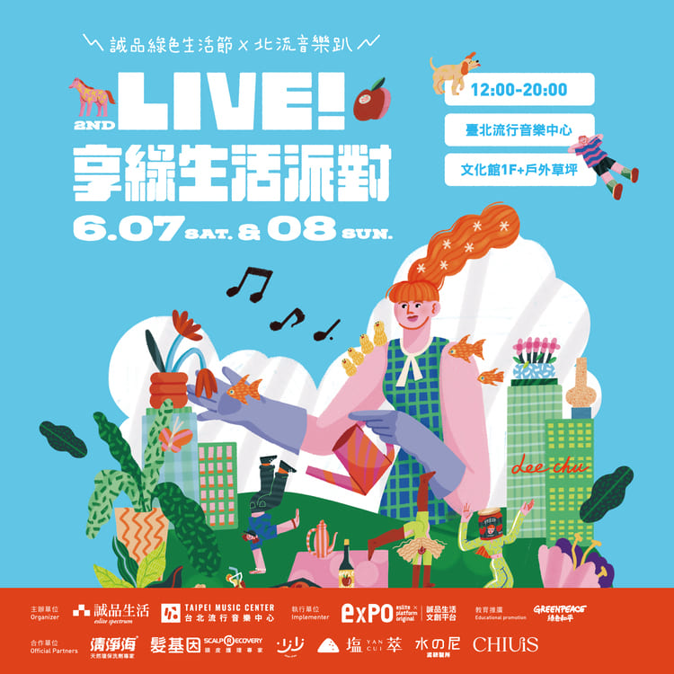 時間表線上直播搜索相片會場位置演出陣容 分享TwitterFacebookLine2025 LIVE!享綠生活派對6月7日-6月8日臺北流行音樂中心戶外表演空間2025 LIVE!享綠生活派對6月7日(六)-6月8日(日)2025 LIVE!享綠生活派對將在台灣舉辦,為期2天,最多一天有1個舞台,共有10個演出。官方網站訂閱2025 LIVE!享綠生活派對(誠品綠色生活節、北流音樂趴),最完整的演出名單陣容、電視直播資訊、線上直播、節目表、時間表、會場地圖、場地資訊、Live Stream、Lineup、Set Times、Timetable和Schedule都在這裡。時間表第1天6月7日(六)12:00第2天6月8日(日)12:00線上直播第1天6月7日(六)12:00第2天6月8日(日)12:00搜索舞台06/0818:30陳如山舞台06/0817:15閻韋伶舞台06/0816:00柯智棠舞台06/0814:45柴郡貓舞台06/0813:30生命樹舞台06/0718:30黃玠舞台06/0717:15知更舞台06/0716:00羅莎莎舞台06/0714:45沒有才能舞台06/0713:30步行者Pacers1相片海報演出陣容時間表會場地圖會場位置臺北流行音樂中心戶外表演空間 Google Maps台北市南港區市民大道八段99號演出陣容第1天黃玠知更羅莎莎步行者沒有才能第2天陳如山柯智棠閻韋伶生命樹柴郡貓🔥2025 LIVE!享綠生活派對第1天時間表第2天時間表會場位置(Google Maps) - 臺北流行音樂中心戶外表演空間會場地圖