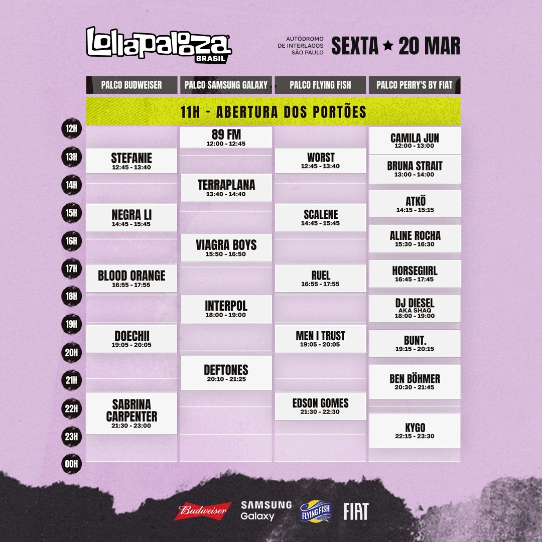 Lollapalooza Brasil 2026將在巴西舉辦,為期3天,最多一天有4個舞台,共有72個演出。